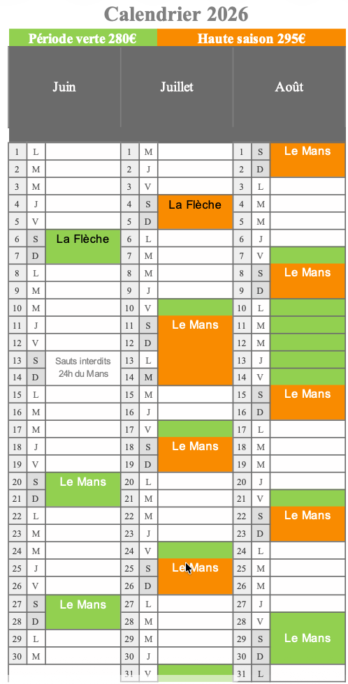 - En cas de remboursement, 30 € de frais seront appliqués par saut couvert